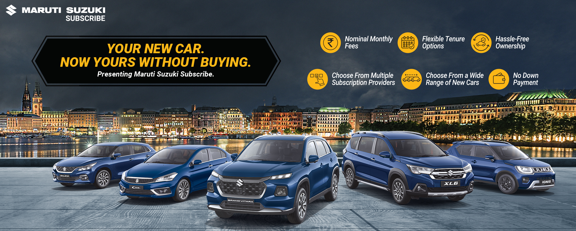 Maruti Suzuki Subscribe enables all customers to enjoy driving their preferred Maruti Suzuki cars without having to deal with all the financial responsibilities that come with owning a car.All you need to do is opt for a monthly subscription plan at a fixed monthly fee, which includes the routine maintenance and insurance costs, and choose a flexible tenure. At Progressive Motors in, Darogapathar, Dimapur, all Hatchback, Sedan, SUV, the MUV models line-up includes Baleno, Invicto, EVitara, Jimny, Ciaz, Ignis, Fronx, Grand Vitara, XL6. Here, you will enjoy Maruti Suzuki Subscribe benefits such as: